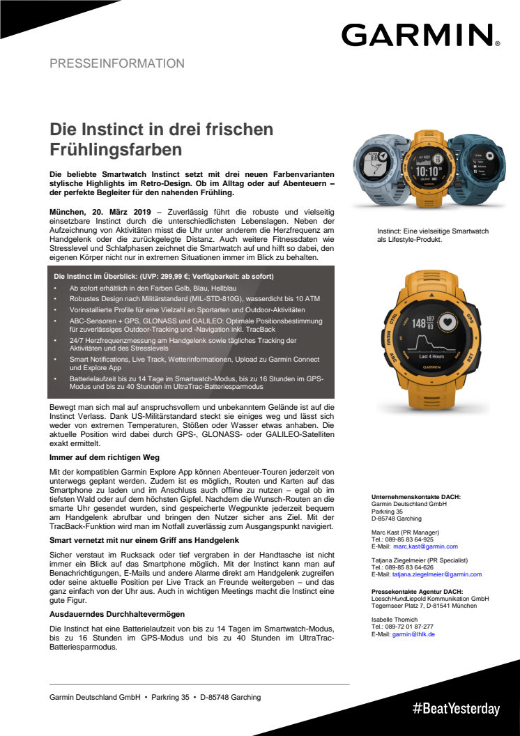 Die beliebte Smartwatch Instinct setzt mit drei neuen Farbenvarianten stylische Highlights im Retro-Design. Ob im Alltag oder auf Abenteuern – der perfekte Begleiter für den nahenden Frühling.